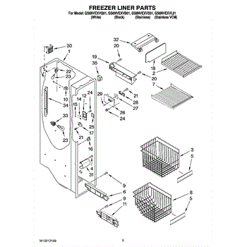Parts for Whirlpool GS6NVEXVB01: 04 - Freezer Liner Parts