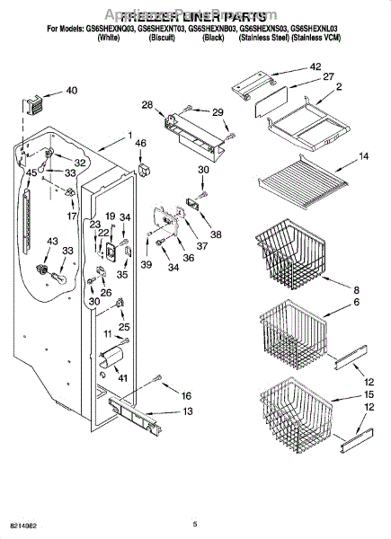 Parts for Whirlpool GS6SHEXNB03: 04 - Freezer Liner Parts