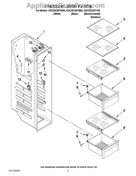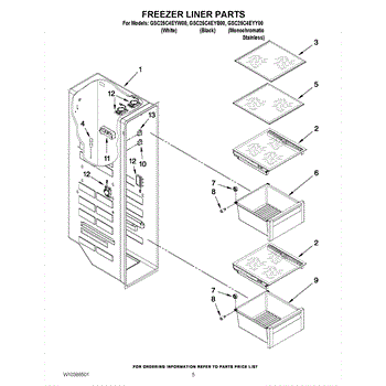 Parts for Whirlpool GSC25C4EYW00: 04 - Freezer Liner Parts
