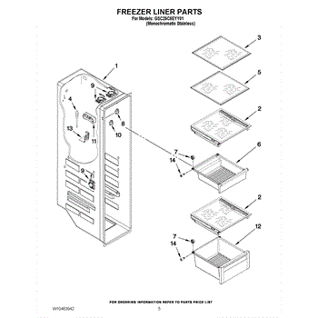 Parts for Whirlpool GSC25C5EYY01: 04 - Freezer Liner Parts