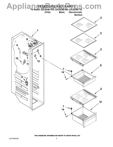 Parts for Whirlpool GSC25C6EYY00: 04 - Freezer Liner Parts