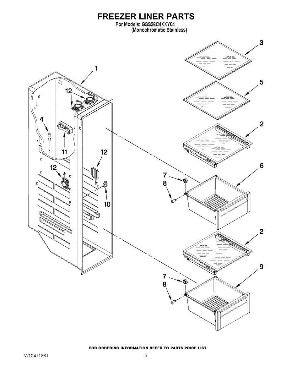 Parts for Whirlpool GSS26C4XXY04: 04 - Freezer Liner Parts