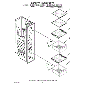 Parts for Whirlpool GSS30C6EYB02: 04 - Freezer Liner Parts
