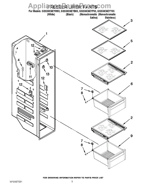 Parts for Whirlpool GSS30C6EYB03: 04 - Freezer Liner Parts