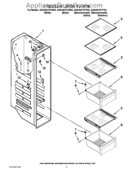 Parts for Whirlpool GSS30C7EYB03: 04 - Freezer Liner Parts