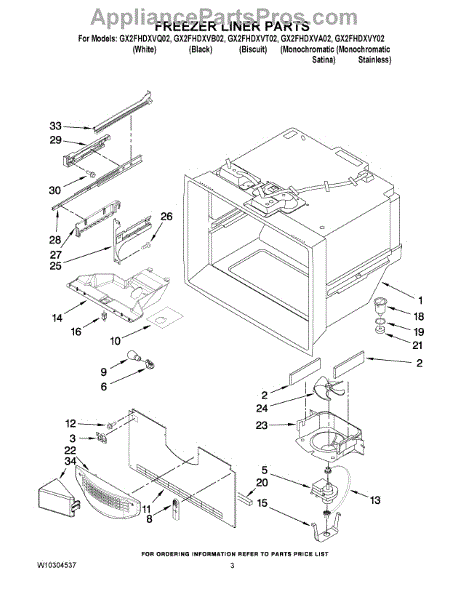 Parts for Whirlpool GX2FHDXVT02: 02 - Freezer Liner Parts