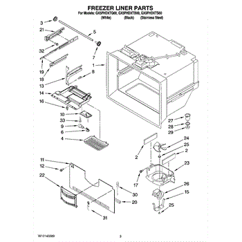 Parts for Whirlpool GX5FHDXTS00: 02 - Freezer Liner Parts