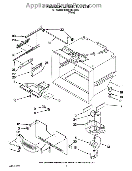 Parts for Whirlpool GX5FHTXVQ05: 02 - Freezer Liner Parts