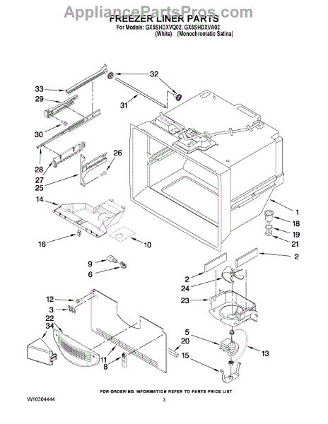 Parts for Whirlpool GX5SHDXVA02: 02 - Freezer Liner Parts