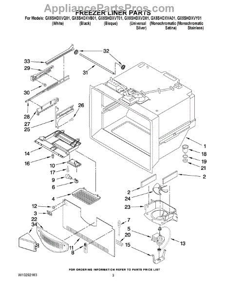 Parts for Whirlpool GX5SHDXVY01: 02 - Freezer Liner Parts