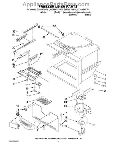 Parts for Whirlpool GX5SHTXVA01: 02 - Freezer Liner Parts