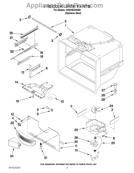 Parts for Whirlpool IX5HHEXWS09: 02 - Freezer Liner Parts
