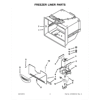 The Drain Funnel is an OEM part for Whirlpool French door refrigerators. It serves as the sloped plastic strainer that guides water from the evaporator coils s it into the drip pan below.