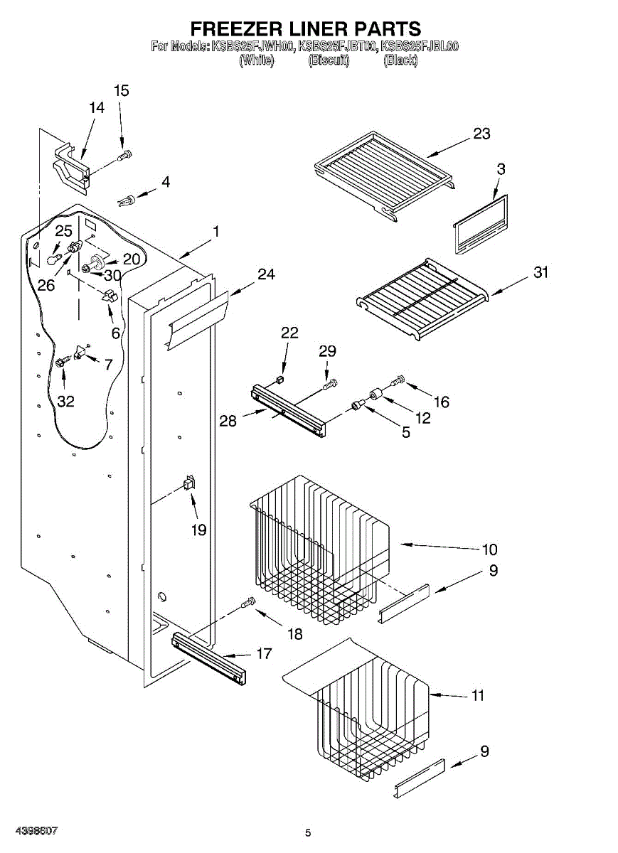 Parts for Kitchenaid KSBS25FJBL00: 04 - Freezer Liner Parts