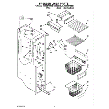 Parts for Kitchenaid KSBS25IVBL00: 04 - Freezer Liner Parts