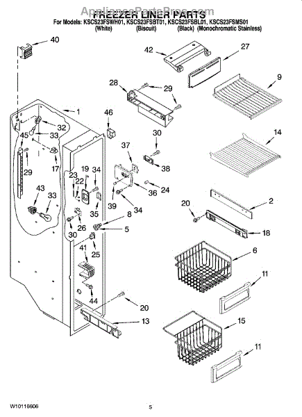 Parts for Kitchenaid KSCS23FSMS01: 04 - Freezer Liner Parts