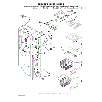 Parts for Kitchenaid KSCS23FTBL01: 04 - Freezer Liner Parts