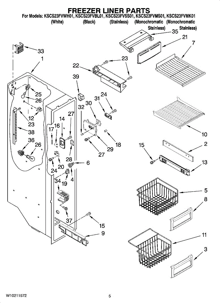 Parts for Kitchenaid KSCS23FVMS01: 04 - Freezer Liner Parts