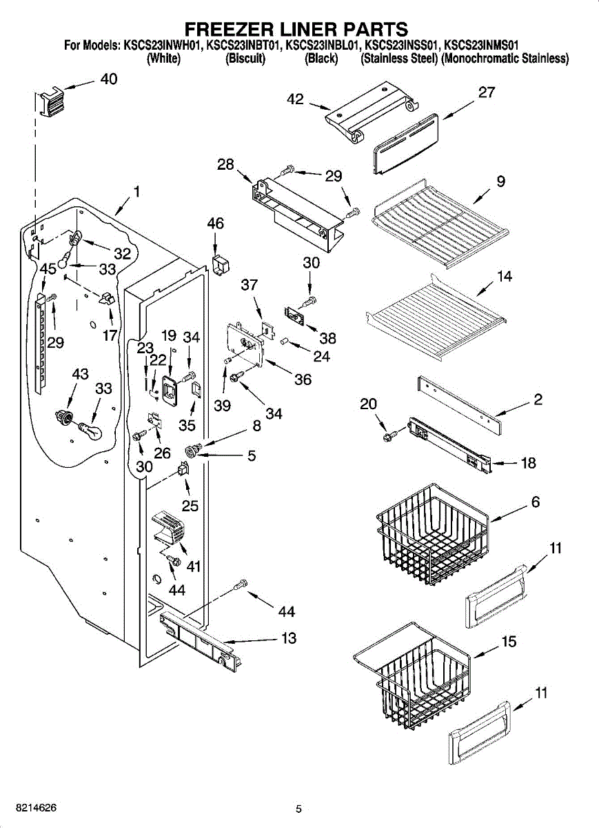 Parts for Kitchenaid KSCS23INWH01: 04 - Freezer Liner Parts