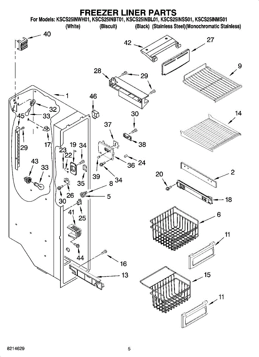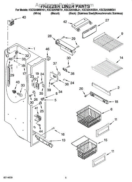 Parts for Kitchenaid KSCS25INBT01: 04 - Freezer Liner Parts