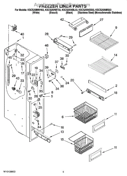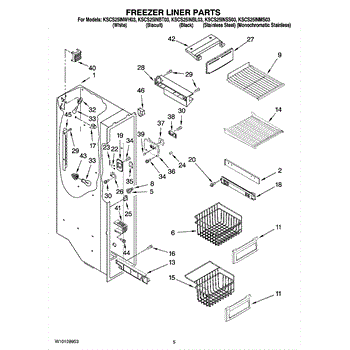 Parts for Kitchenaid KSCS25INBT03: 04 - Freezer Liner Parts