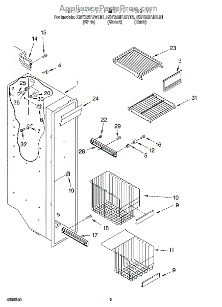 Parts for Kitchenaid KSFS25FJWH01: 04 - Freezer Liner Parts
