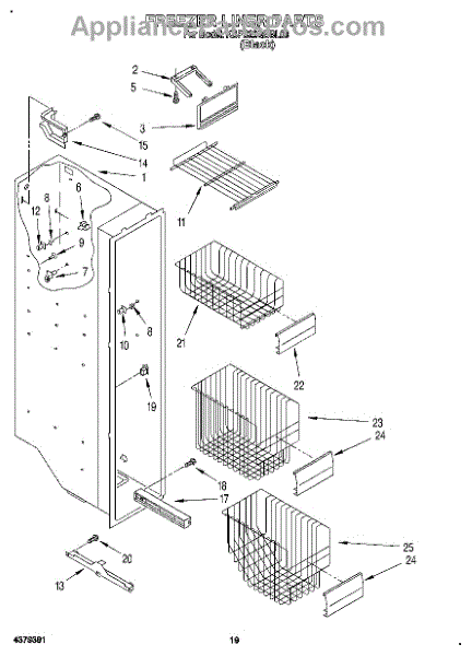 This is the complete horizontal ice dispenser bucket assembly with crusher. It fits 22 cubic foot refrigerator models. For 20 cubic foot models order WP2209778. For 25 and 27 cubic foot models order WPW10312300.