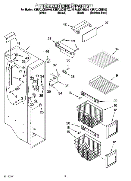 Parts for Kitchenaid KSRA22CNSS02: 04 - Freezer Liner Parts
