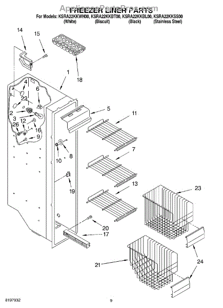 Parts for Kitchenaid KSRA22KKWH00: 06 - Freezer Liner Parts