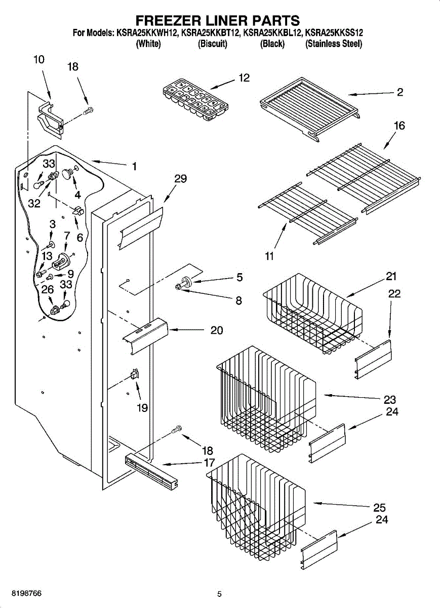 Parts for Kitchenaid KSRA25KKSS12: 04 - Freezer Liner Parts
