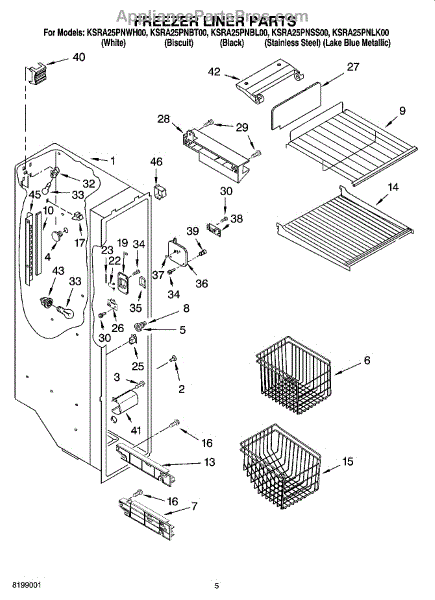 Parts for Kitchenaid KSRA25PNSS00: 04 - Freezer Liner Parts