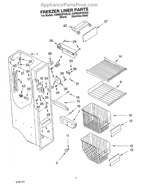 Parts for Kitchenaid KSRB22FKSS02: 04 - Freezer Liner Parts