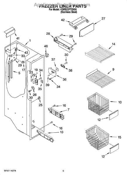 Parts for Kitchenaid KSRB22FTBX00: 04 - Freezer Liner Parts