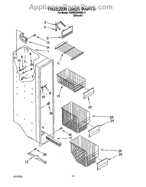 This is the complete horizontal ice dispenser bucket assembly with crusher. It fits 22 cubic foot refrigerator models. For 20 cubic foot models order WP2209778. For 25 and 27 cubic foot models order WPW10312300.
