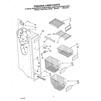 Parts for Kitchenaid KSRB27FHBL05: 04 - Freezer Liner Parts