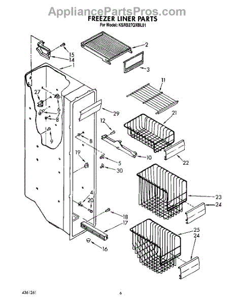 Parts for Kitchenaid KSRB27QXBL01: 05 - Freezer Liner Parts