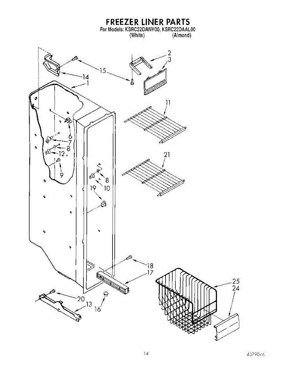 Parts for Kitchenaid KSRC22DAWH00: 09 - Freezer Liner Parts