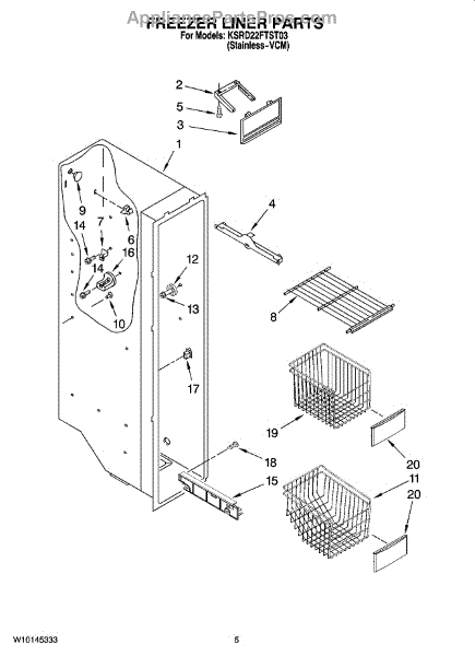 Parts for Kitchenaid KSRD22FTST03: 04 - Freezer Liner Parts