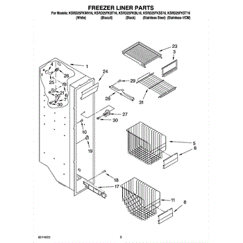 Parts for Kitchenaid KSRD25FKBT16: 04 - Freezer Liner Parts