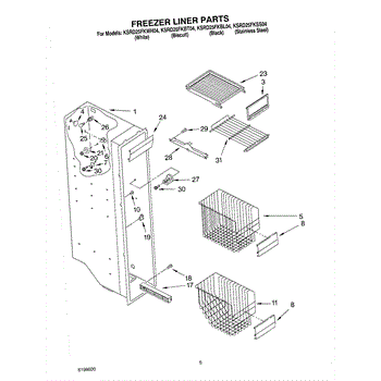 Parts for Kitchenaid KSRD25FKWH04: 04 - Freezer Liner Parts