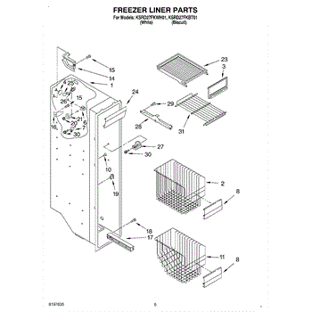 Parts for Kitchenaid KSRD27FKWH01: 04 - Freezer Liner Parts