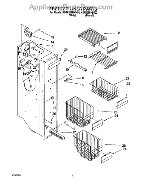 Parts for Kitchenaid KSRE25FHBT02: 04 - Freezer Liner Parts