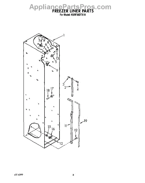 This screw is used to secure the handle end cap to the center of the door. The screw size measures 8-18 x 1/2 inches.