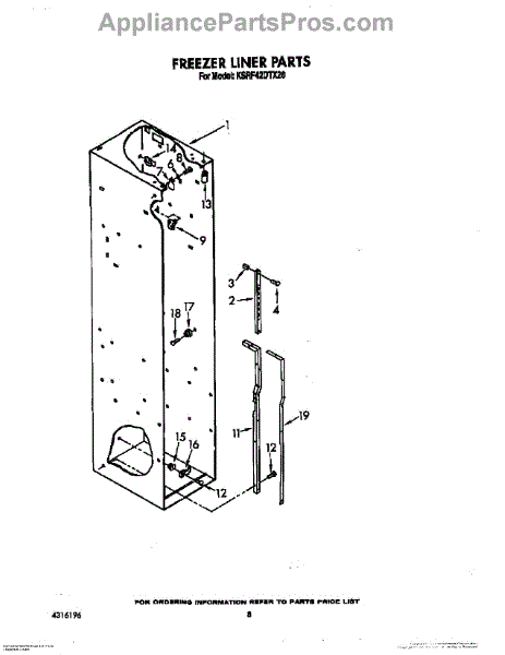 This screw is used to secure the handle end cap to the center of the door. The screw size measures 8-18 x 1/2 inches.