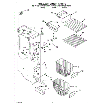 Parts for Kitchenaid KSRG25FKBT01: 04 - Freezer Liner Parts