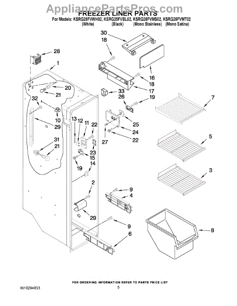 Parts for Kitchenaid KSRG25FVWH02: 04 - Freezer Liner Parts