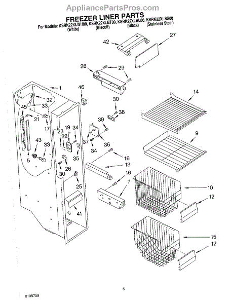 Parts for Kitchenaid KSRK22XLSS00: 04 - Freezer Liner Parts