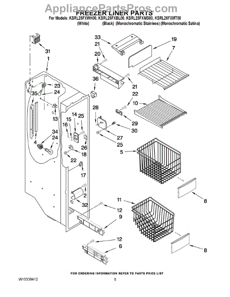 Parts for Kitchenaid KSRL25FXBL00: 04 - Freezer Liner Parts