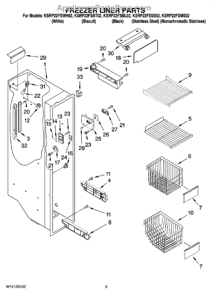 This slide is the replacement rack or drawer support that restores smooth, stable movement and keeps interior racks or drawers aligned. It helps parts glide in and out without binding or sagging. What it does: