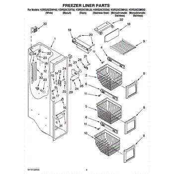 Parts for Kitchenaid KSRS25CSBT02: 04 - Freezer Liner Parts